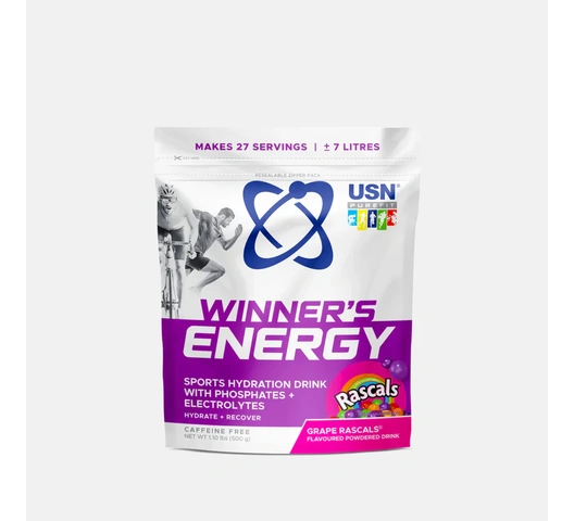 USN Winner's Energy Sport Hydration Drink With Phosphates + Electrolytes - 500g, Grape Rascals