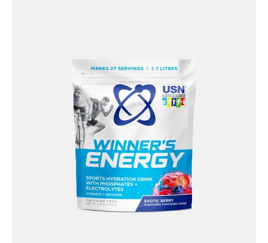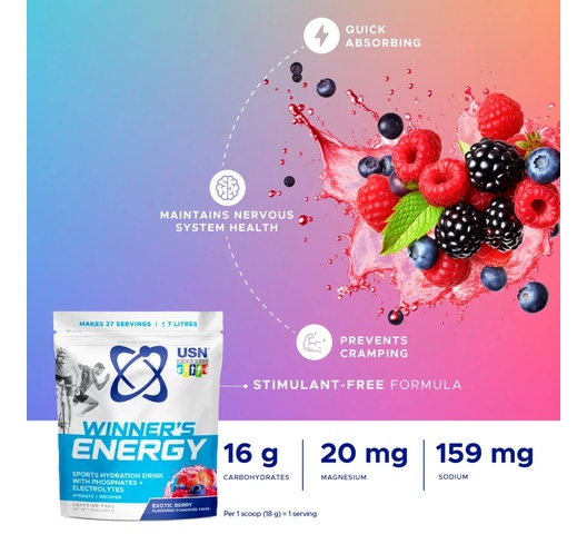USN Winner's Energy Sport Hydration Drink With Phosphates + Electrolytes - 500g, Exotic Berry